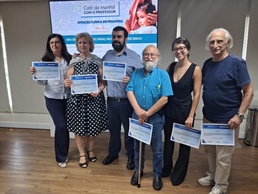 O Café da Manhã foi coordenado e moderado por Nelci Zanon Collange e Zan Mustacchi, respectivamente presidente do DC de Neurologia e Neurocirurgia da SPSP e presidente do DC de Genética da SPSP, contando, ainda, com a participação de Saul Cypel, que realizou a abertura do evento e coordenou e moderou a mesa, e Louise Scridelle Tavares, também coordenadora e moderadora da atividade, ambos membros do DC de Neurologia e Neurocirurgia da SPSP. Além deles, participaram do Café da Manhã Carmen Silvia Curiati Mendes, neuropediatra pela UNIFESP e Diretora Clínica do Instituto de Genética e Erros Inatos do Metabolismo (IGEIM/UNIFESP), e Marco Antonio Curiati, geneticista do Instituto de Genética e Erros Inatos do Metabolismo (IGEIM/UNIFESP).