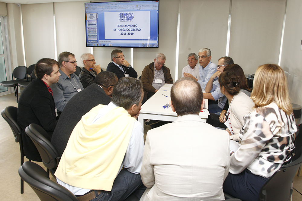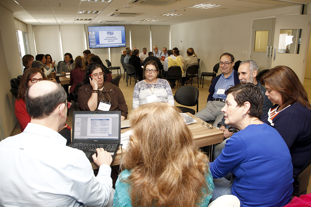 A sede da SPSP recebeu mais de 80 membros da Diretoria para a primeira reunião de Planejamento Estratégico da SPSP – Gestão 2016/2019. O encontro aconteceu no dia 10 de setembro, com o objetivo traçar as metas de trabalho para os próximos anos. Na parte da manhã, após a abertura do evento e as orientações sobre a reunião, oito grupos de trabalho se reuniram, discutiram suas prioridades e montaram suas apresentações: Publicações; Ensino e Pesquisa; Regionais; Defesa Profissional; Cursos e Eventos; Departamentos Científicos (dois grupos) e Grupos de Trabalho. Após o almoço, os grupos apresentaram seus objetivos para a gestão e os colegas presentes tiveram espaço para manifestar suas opiniões. As informações e propostas apresentadas estão sendo analisadas pelos membros da Diretoria Executiva e serão trabalhadas e implementadas durante os próximos três anos.
