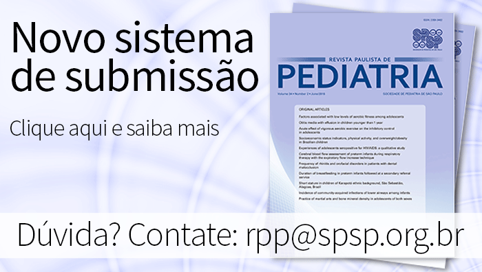 Revista Paulista de Pediatria Texto divulgado em 14/07/2016 A partir de hoje, 14 de julho, o acesso para submissão de artigos para a Revista Paulista de Pediatria deverá ser realizado por meio do link ...