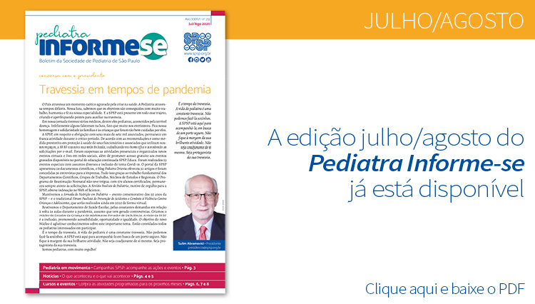 Sociedade de Pediatria de São PauloTexto divulgado em 13/08/2020 A quarta edição de 2020 do boletim Pediatra Informe-se convida os colegas pediatras para a Jornada de Nutrição em Pediatria – em ...