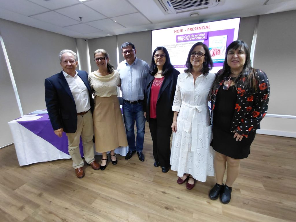 Coordenado por Jamil Pedro de Siqueira Caldas, presidente do DC de Neonatologia da SPSP, que foi o moderador da mesa e realizou a abertura da atividade, o Café da Manhã contou com a participação dos seguintes especialistas: Marina Carvalho de Moraes Barros e Maria Augusta Bento Cicaroni Gibelli, respectivamente vice-presidente e secretária do DC de Neonatologia da SPSP; além do médico Paulo Roberto Pachi, professor da Faculdade de Ciências Médicas da Santa Casa de São Paulo; da fonoaudióloga clínica Flávia Giuli Santi Martins Ribeiro, pesquisadora e coordenadora dos Programas de Triagem Auditiva Neonatal e de Disfagia Neonatal do Hospital São Luiz-Rede D’Or nas Unidades Star, Anália Franco e São Caetano; e da médica Mary de Assis Carvalho, professora doutora do Departamento de Pediatria da Faculdade de Medicina de Botucatu da Universidade Estadual – Área de Gastrenterologia – Hepatologia Pediátrica.