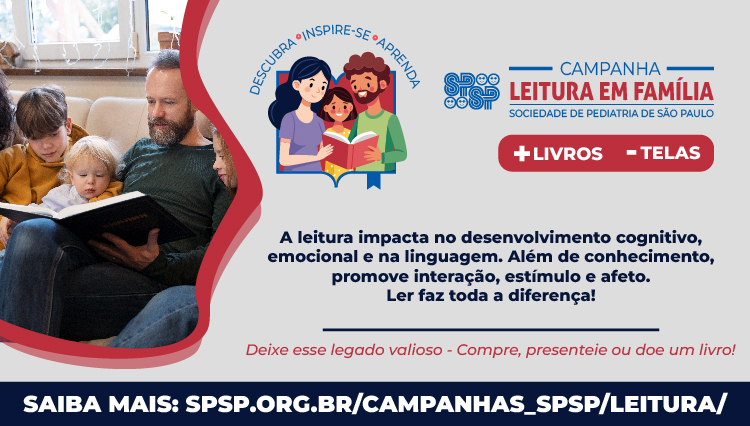 A SPSP está lançando a campanha “Leitura em Família. Fortalecendo o desenvolvimento e os afetos”, por reconhecer a importância desse tema no contexto do mundo moderno. As melhores fontes da Medicina Baseada em Evidências apontam para o importante papel desempenhado pela leitura e pela troca de afetos em família e, em especial, para o desenvolvimento cognitivo e emocional da criança.
