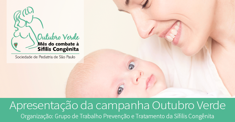 A Sociedade de Pediatria de São Paulo (SPSP) criou a campanha “Outubro Verde – Mês do Combate à Sífilis Congênita”, promovida pelo Grupo de Trabalho (GT) de Prevenção e Tratamento da Sífilis Congênita, com o objetivo de chamar a atenção da população e dos profissionais de saúde para a importância do diagnóstico precoce e do tratamento da sífilis na gestante. A doença representa um enorme desafio aos pediatras, devido ao aumento progressivo das taxas de transmissão vertical (da mãe para o bebê).