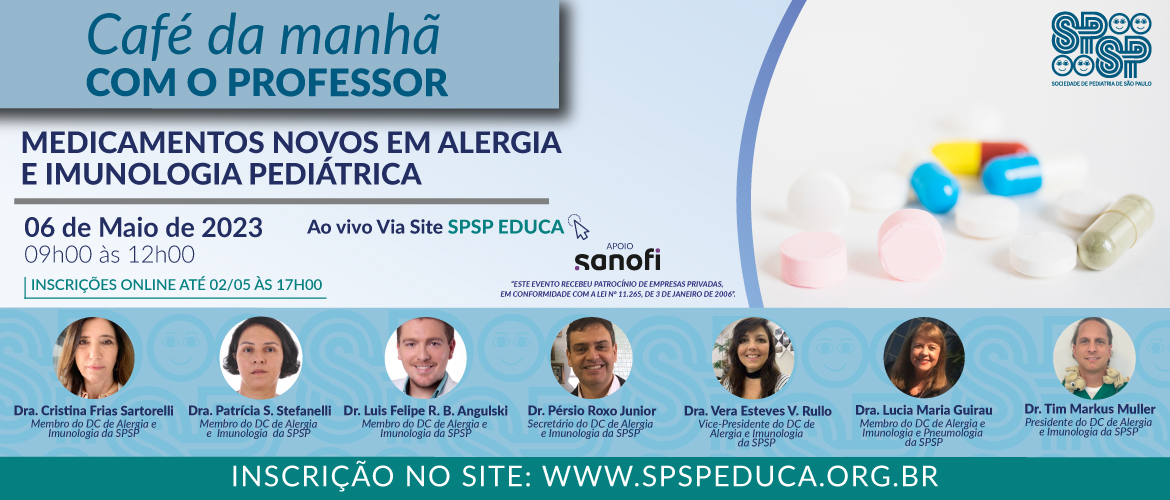 Foi realizado ao vivo, com transmissão via site do SPSP EDUCA, no dia 6 de maio, o Café da Manhã com o Professor – Medicamentos novos em Alergia e Imunologia pediátrica, evento que teve 52 parti ...