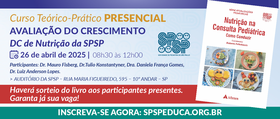 No dia 26 de abril, foi realizado, presencialmente, no auditório da SPSP, o Curso Teórico-Prático – Avaliação do Crescimento, que objetivou demonstrar a forma prática de atuação do pediatra na avaliaç ...