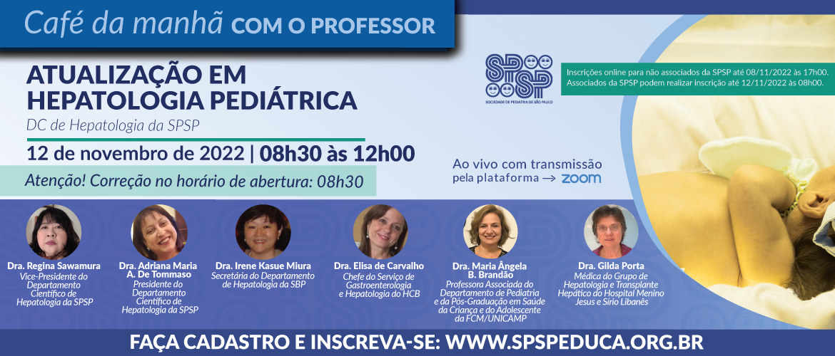 No dia 12 de novembro foi realizado ao vivo, com transmissão pela plataforma Zoom da SPSP, o Café da Manhã com o Professor, em que foi abordado o tema Atualização em Hepatologia Pe ...
