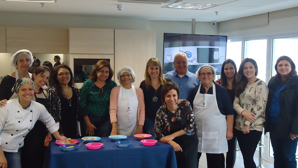 Mais uma vez os pediatras se encontraram na cozinha da sede da SPSP para o curso Puericultura Prática da SPSP: Cozinha Experimental, realizado em 24 de junho. Com organização da Diretoria de Cursos e Eventos e o Departamento de Pediatria Ambulatorial da SPSP, o evento contou com a participação de 13 pediatras que, com a ajuda da nutricionista Flavia Montanari, da chef de cozinha Fernanda Santos e de suas voluntárias, prepararam quatro pratos nutritivos e atrativos. A ideia do curso é capacitar os médicos na elaboração de pratos gostosos e balanceados para as crianças, ampliando, assim, sua atuação no consultório e ambulatório.