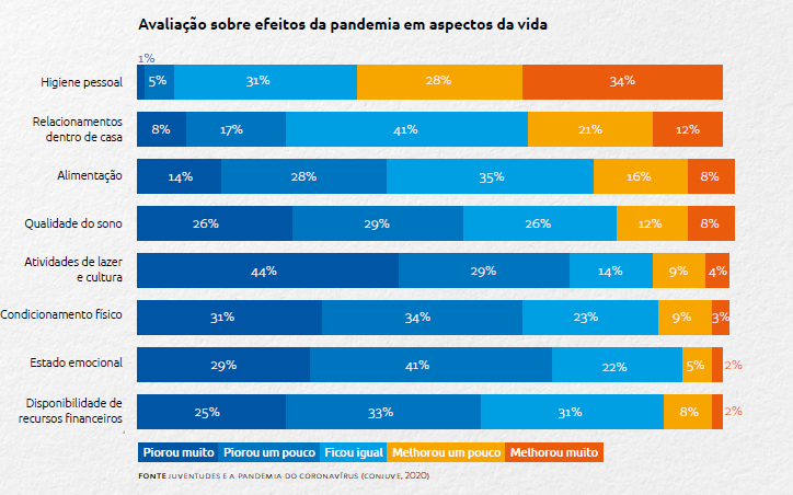 A juventude brasileira sempre precisou de um olhar atento de toda a sociedade no que diz respeito à sua saúde, mas isso tornou-se ainda mais urgente, levando-se em consideração a pandemia do coronavírus, que impactou gravemente a saúde física e mental dos jovens, como descrito no quadro 1.