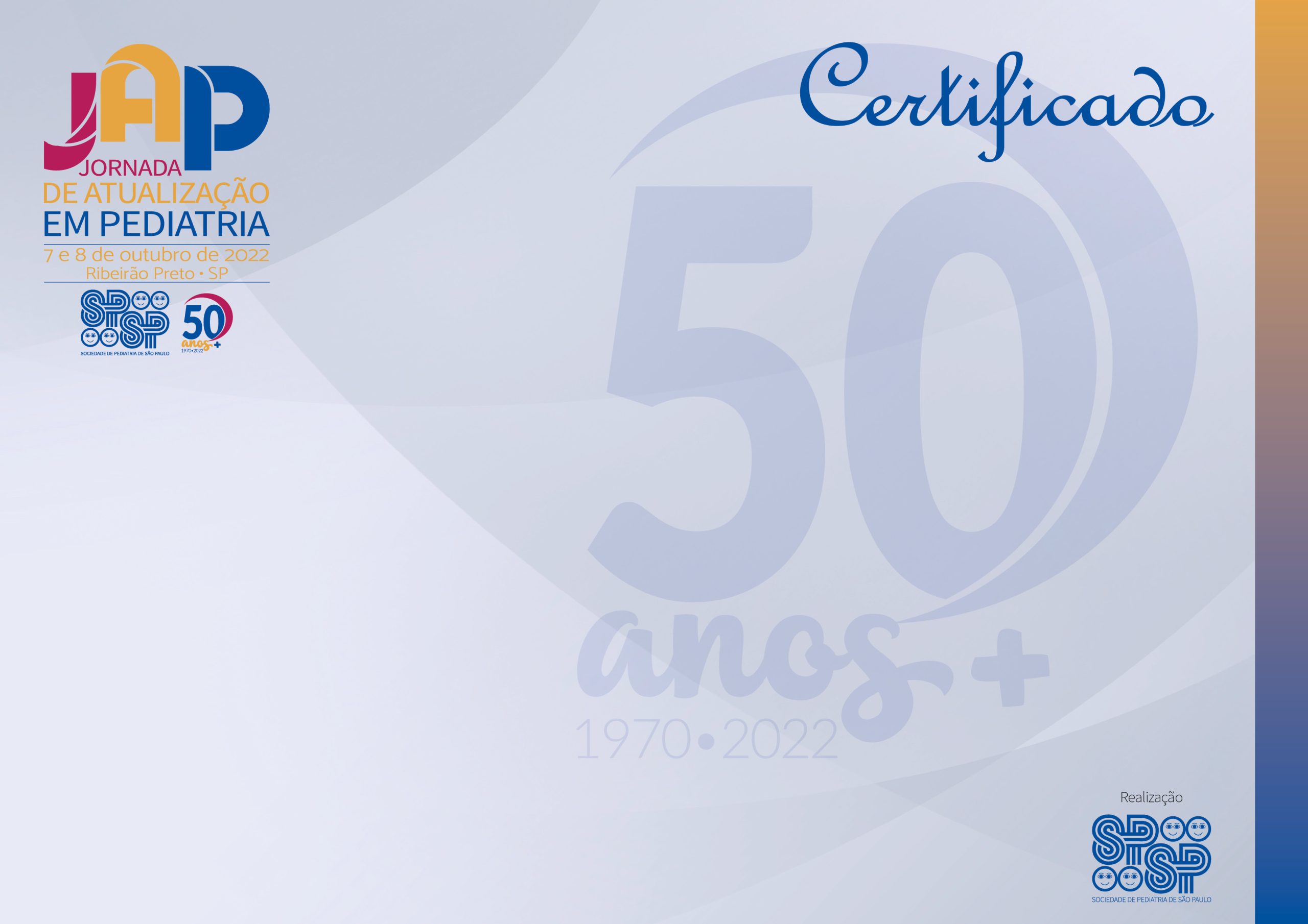Atenção participantes da Jornada de Atualização em Pediatria – 50 anos SPSP, os certificados de presença estarão disponíveis a partir do dia 14 de outubro.