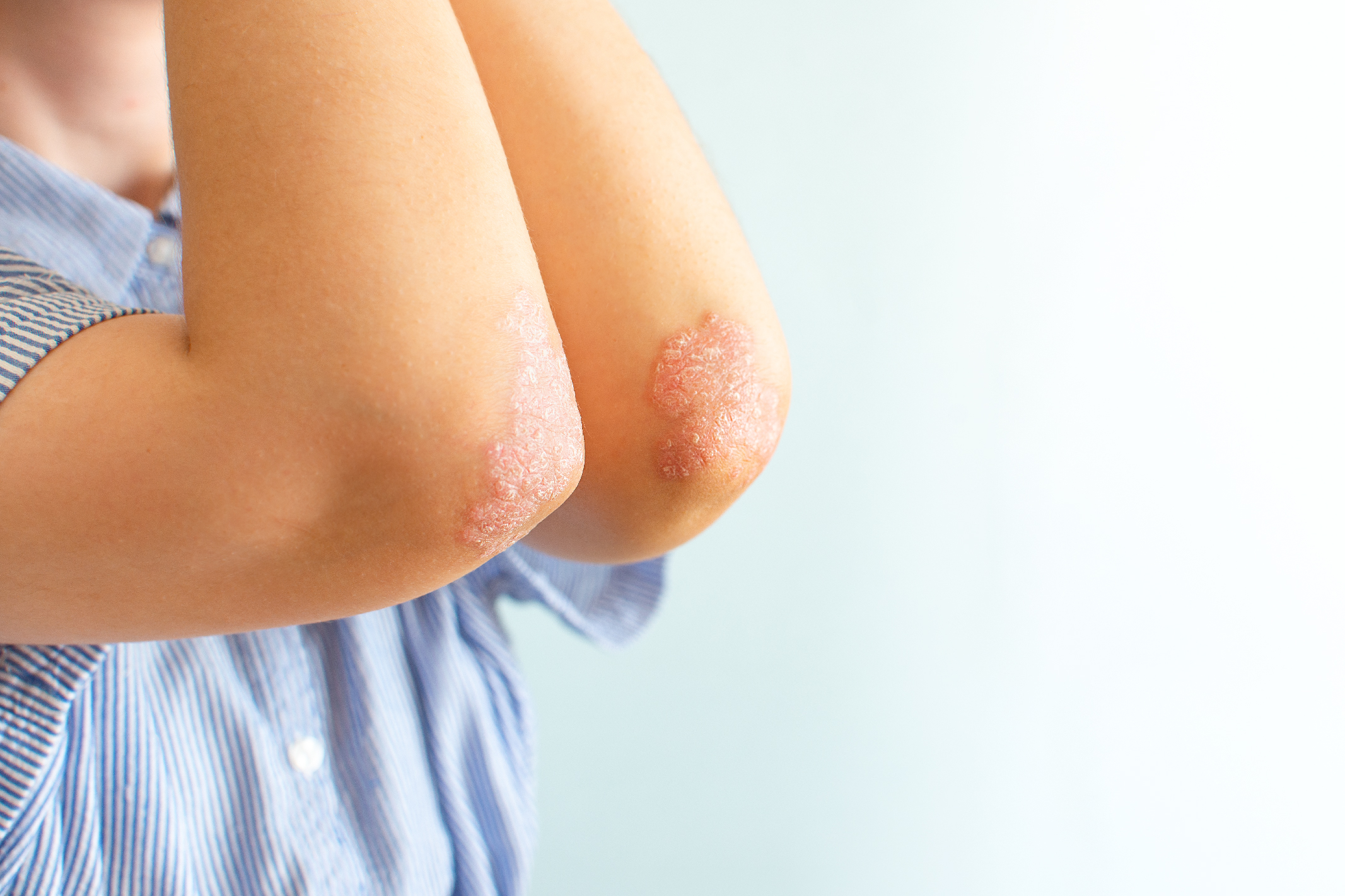 A Psoríase é uma doença inflamatória crônica, caracterizada pelo aparecimento de lesões róseas ou avermelhadas, com presença de descamação da pele com tonalidade esbranquiçada. É uma doença de causas não completamente esclarecidas e que atinge, principalmente, a população adulta (maior de 18 anos de idade), mas cerca de 20% a 30% dos casos podem se iniciar ainda na faixa etária pediátrica. A Psoríase que se inicia na infância tem um forte componente familiar, sendo que em um número elevado de casos um ou os dois pais apresentam a doença.