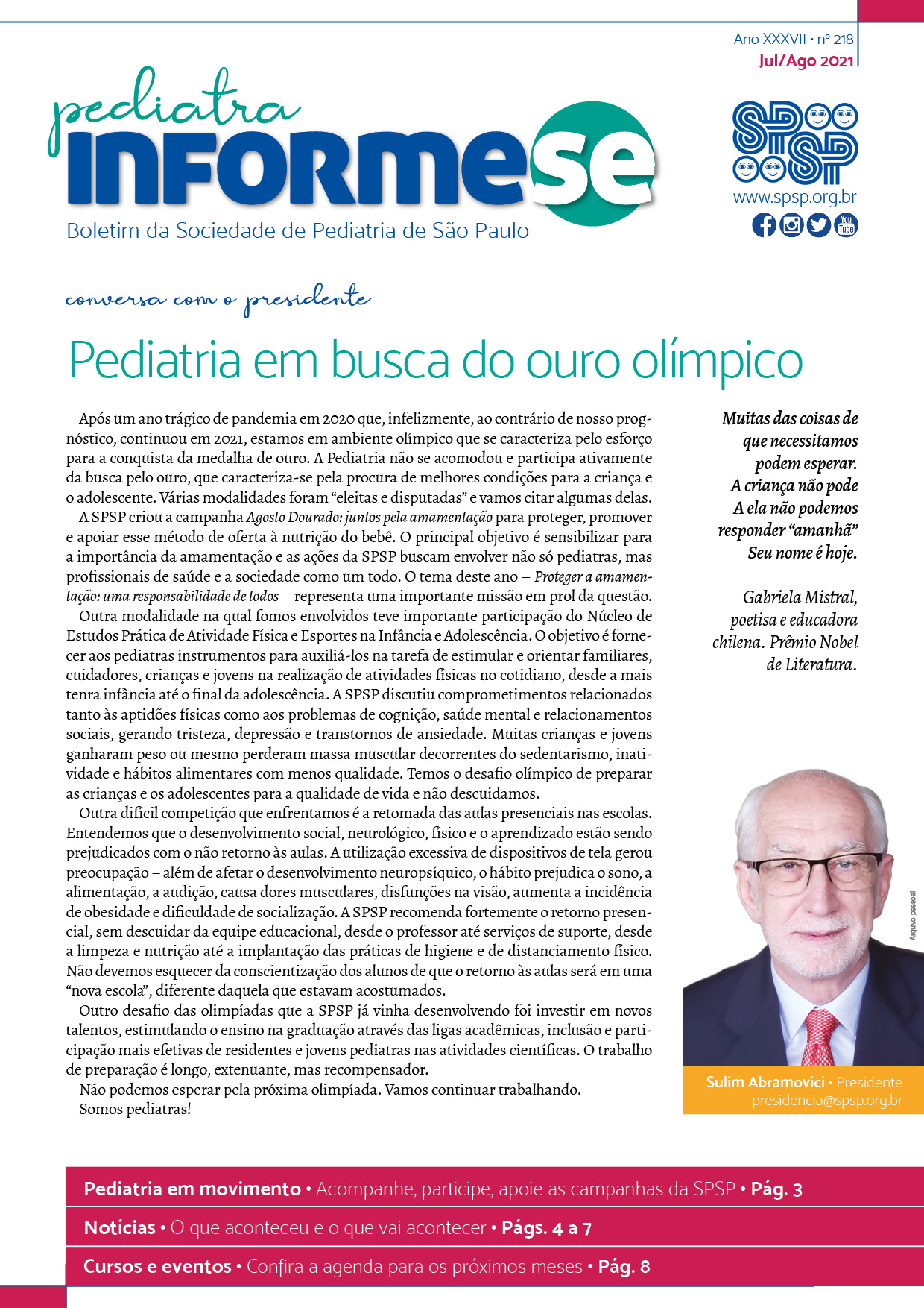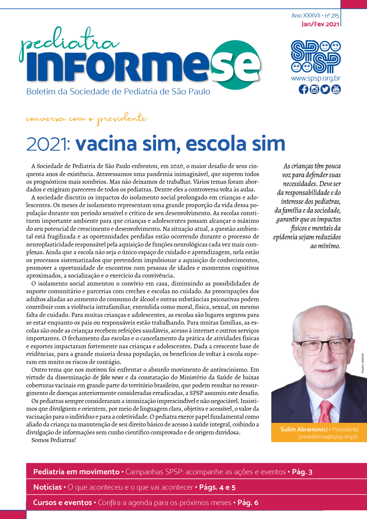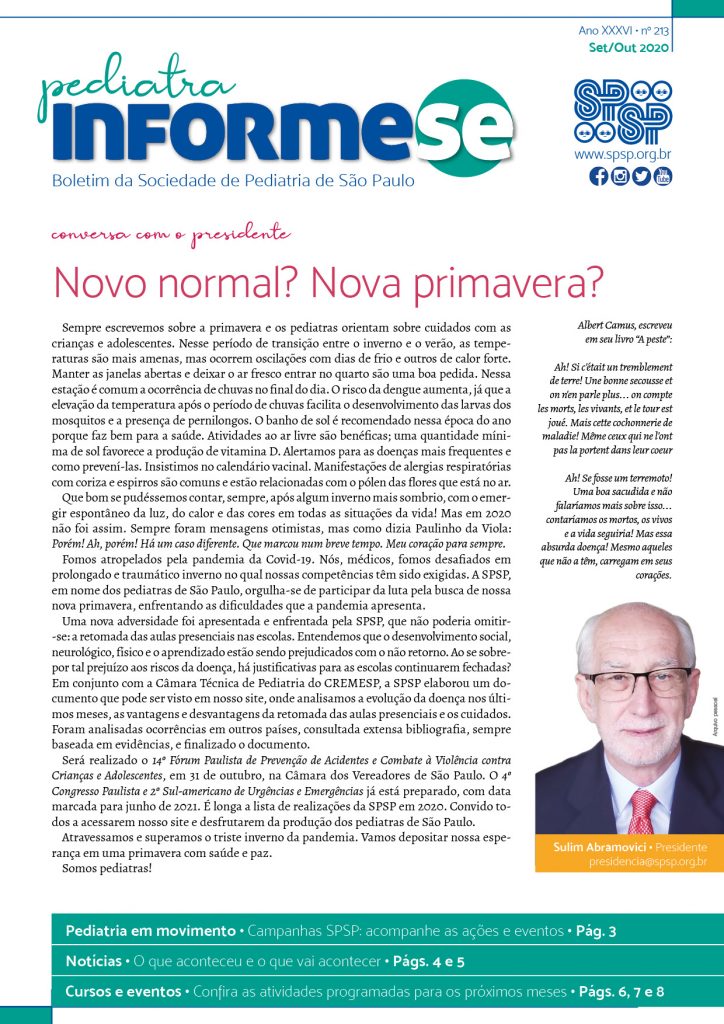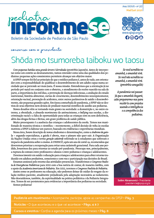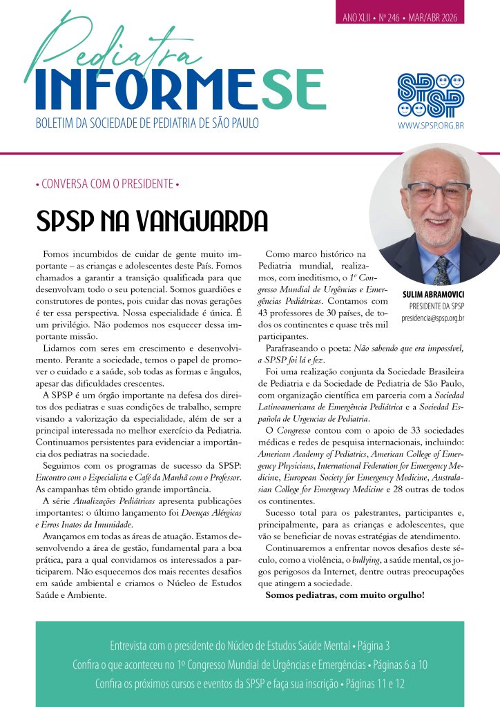 Boletim: Pediatra Informe-se é o canal direto da Diretoria Executiva e Plena da SPSP, a publicação conta nossa história através das gestões. Desde 2005 a diretoria propôs manter uma versão digital do informativo com o objetivo garantir que a atualização seja lida pelos os associados.