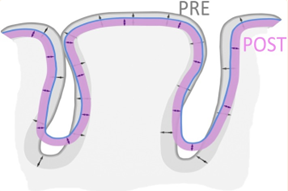 A massa cinzenta se reduz e a massa branca aumenta, fazendo com que as conexões cerebrais sejam mais específicas e mais rápidas. Essas alterações se iniciam no início da puberdade na região posterior do cérebro (occipital) e progridem para a região frontal (região mais elaborada do cérebro).