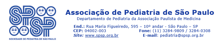 A Presidente da ASSOCIAÇÃO DE PEDIATRIA DE SÃO PAULO, no uso das atribuições que lhes confere o Estatuto Social, convoca os senhores associados para a ASSEMBLEIA GERAL EXTRAORDINÁRIA a ser realizada no dia 12 de Abril de 2025, na sede da SPSP – Rua Maria Figueiredo, 595 – 10º andar, Paraíso, São Paulo, SP, às 09h00, em primeira convocação, com a presença mínima de 2/3 (dois terços) dos associados quites com as suas obrigações associativas; ou, às 10h00, em segunda convocação, para deliberação e aprovação, por pelo menos 1/3 dos associados presentes à Assembleia especialmente convocada para esse fim, sobre a seguinte ordem do dia: