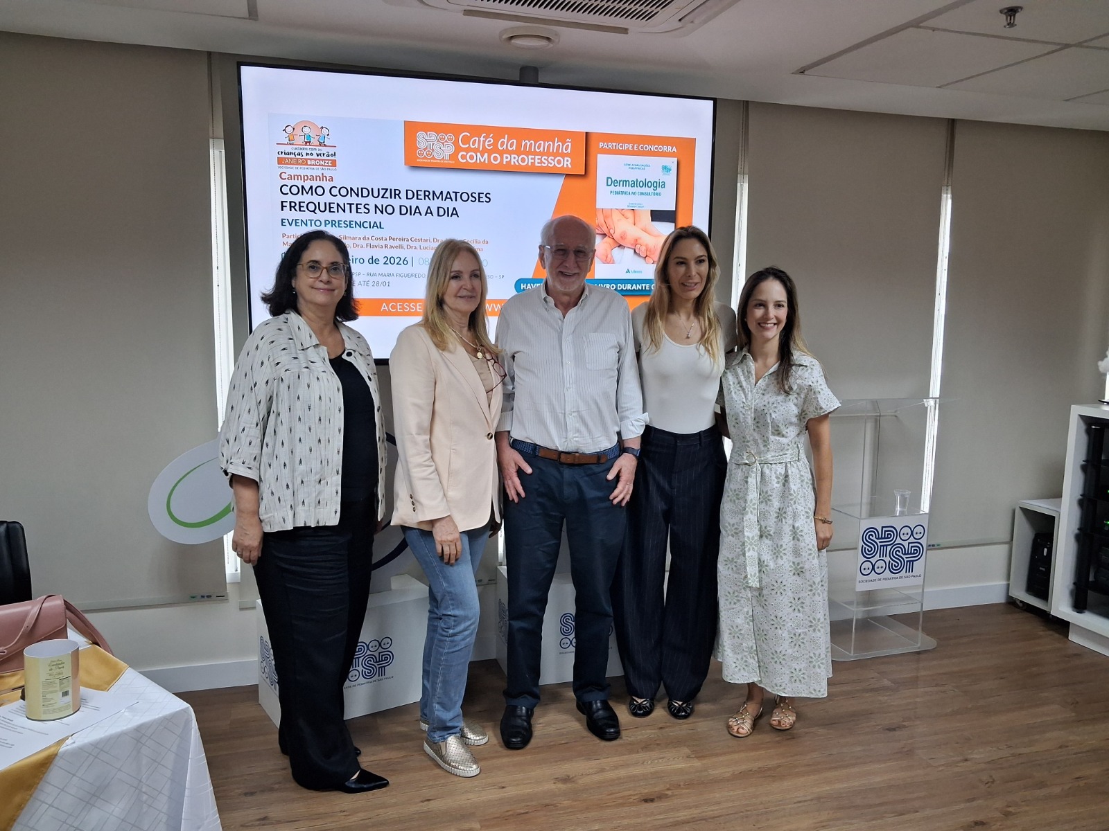 Em ação pela campanha Janeiro Bronze, foi realizado, no dia 31 de janeiro, de forma presencial, na sede da SPSP, o Café da Manhã com o Professor – Como conduzir dermatoses frequentes no dia a dia. Organizado pela Diretoria de Cursos e Eventos e Departamento Científico (DC) de Dermatologia da SPSP, o evento, direcionado a pediatras e residentes de pediatria com interesse em dermatologia pediátrica, teve por objetivo promover atualização sobre diagnóstico e terapêutica das dermatoses mais frequentes na prática diária do pediatra.